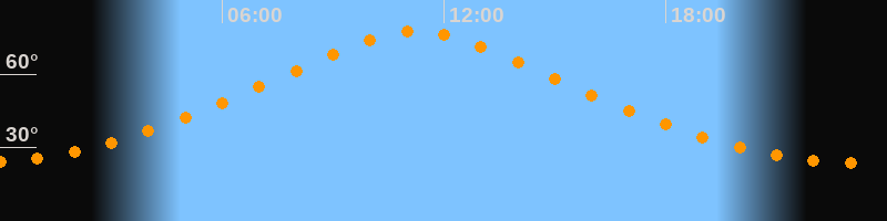 | Höchster Stand (Kulmination) | 11:15 Uhr (h = 77,4°) |