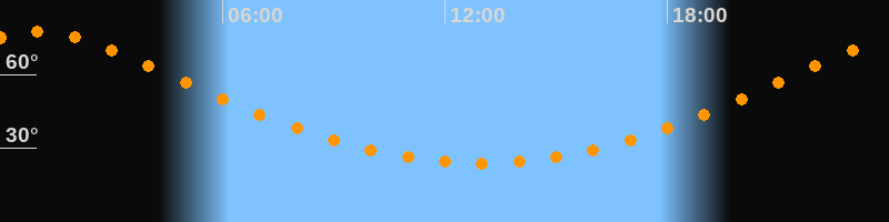 | Höchster Stand (Kulmination) | 01:02 Uhr (h = 77,4°) |