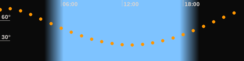 | Höchster Stand (Kulmination) | 00:46 Uhr (h = 77,4°) |