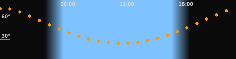 | Höchster Stand (Kulmination) | 00:18 Uhr (h = 77,4°) |
