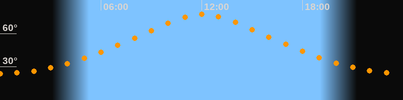 | Höchster Stand (Kulmination) | 12:03 Uhr (h = 77,4°) |