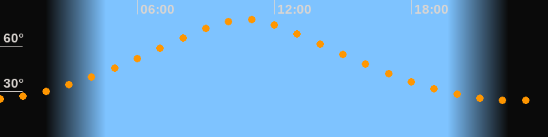 | Höchster Stand (Kulmination) | 10:42 Uhr (h = 77,4°) |