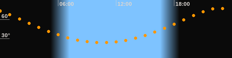 | Höchster Stand (Kulmination) | 22:34 Uhr (h = 77,4°) |