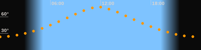 | Höchster Stand (Kulmination) | 11:45 Uhr (h = 77,4°) |