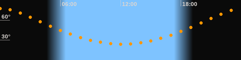 | Höchster Stand (Kulmination) | 00:06 Uhr (h = 77,4°) |