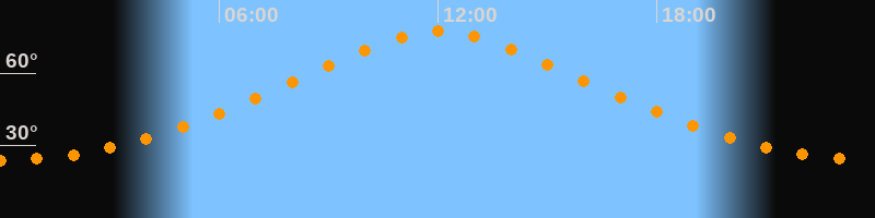 | Höchster Stand (Kulmination) | 12:02 Uhr (h = 77,4°) |