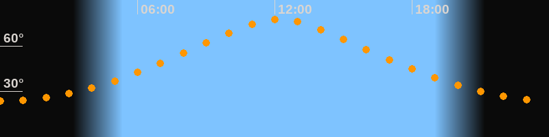 | Höchster Stand (Kulmination) | 12:11 Uhr (h = 77,4°) |