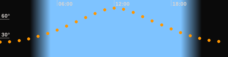 | Höchster Stand (Kulmination) | 12:07 Uhr (h = 77,4°) |