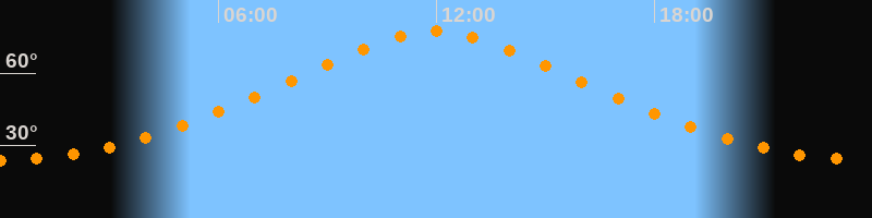| Höchster Stand (Kulmination) | 11:57 Uhr (h = 77,4°) |