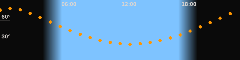 | Höchster Stand (Kulmination) | 01:04 Uhr (h = 77,4°) |