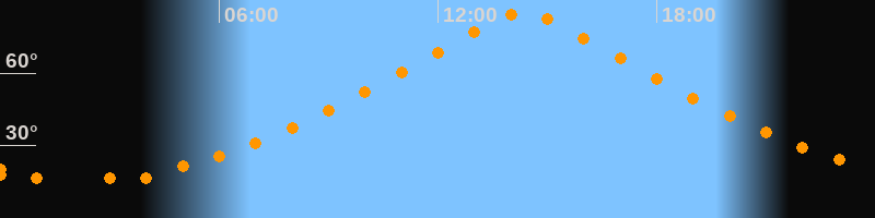 | Höchster Stand (Kulmination) | 14:20 Uhr (h = 84,9°) |