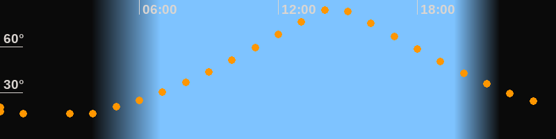 | Höchster Stand (Kulmination) | 14:25 Uhr (h = 84,9°) |