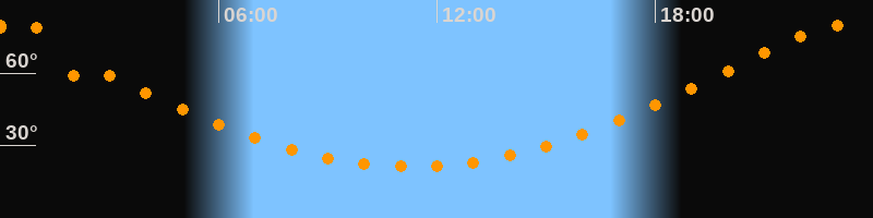 | Höchster Stand (Kulmination) | 23:19 Uhr (h = 80,1°) |