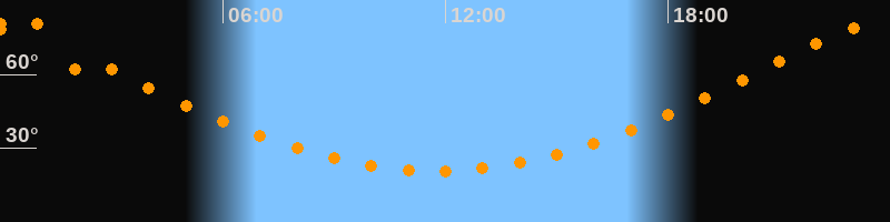 | Höchster Stand (Kulmination) | 23:44 Uhr (h = 80,6°) |