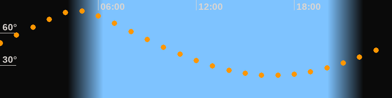 | Höchster Stand (Kulmination) | 04:44 Uhr (h = 80,6°) |
