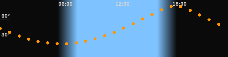 | Höchster Stand (Kulmination) | 18:26 Uhr (h = 80,6°) |