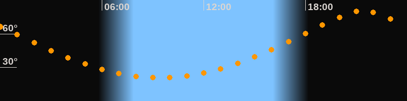 | Höchster Stand (Kulmination) | 21:23 Uhr (h = 80,6°) |