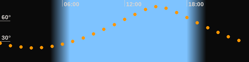 | Höchster Stand (Kulmination) | 15:10 Uhr (h = 80,6°) |