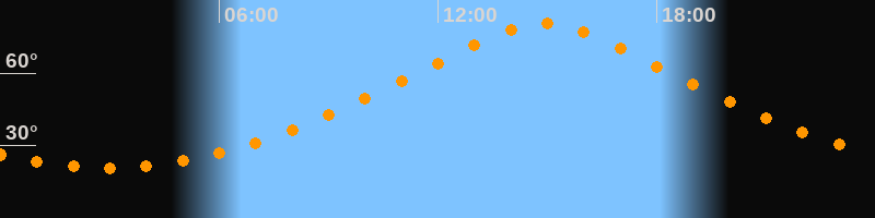 | Höchster Stand (Kulmination) | 14:54 Uhr (h = 80,6°) |