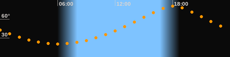 | Höchster Stand (Kulmination) | 18:04 Uhr (h = 80,6°) |