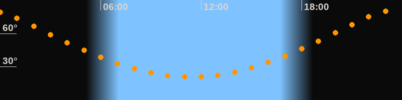 | Höchster Stand (Kulmination) | 23:21 Uhr (h = 80,6°) |