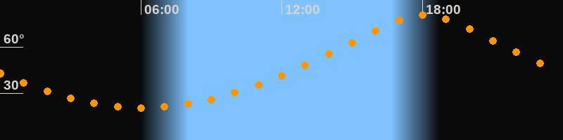 | Höchster Stand (Kulmination) | 18:05 Uhr (h = 80,6°) |