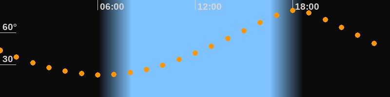 | Höchster Stand (Kulmination) | 18:11 Uhr (h = 80,6°) |