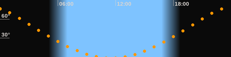 Höchster Stand (Kulmination)23:30 Uhr (h = 77,1°)
