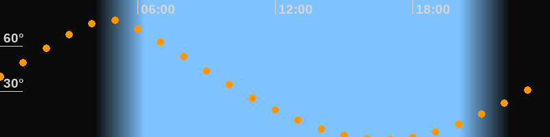 Höchster Stand (Kulmination)04:43 Uhr (h = 77,1°)