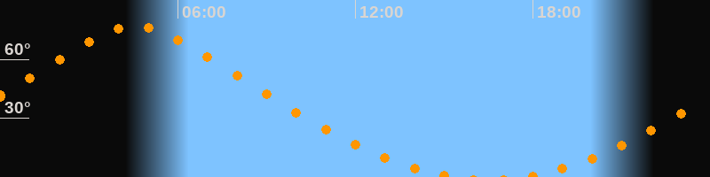 Höchster Stand (Kulmination)04:33 Uhr (h = 77,1°)