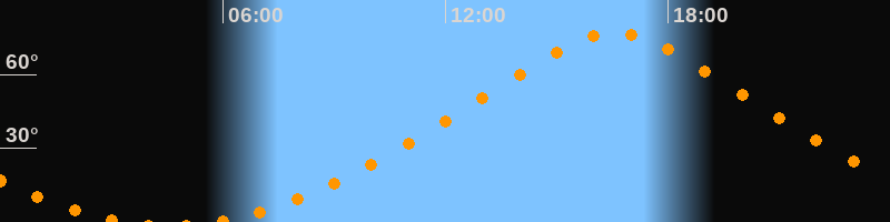 Höchster Stand (Kulmination)16:34 Uhr (h = 77,1°)