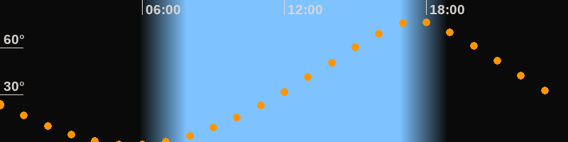 Höchster Stand (Kulmination)17:32 Uhr (h = 77,1°)