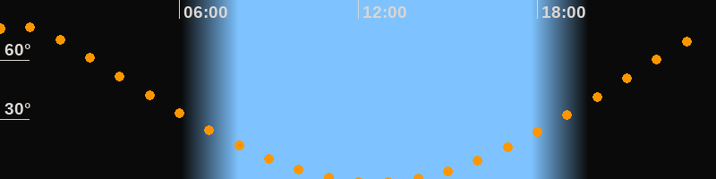 Höchster Stand (Kulmination)00:31 Uhr (h = 77,1°)
