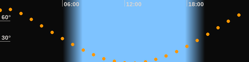 Höchster Stand (Kulmination)00:36 Uhr (h = 77,1°)