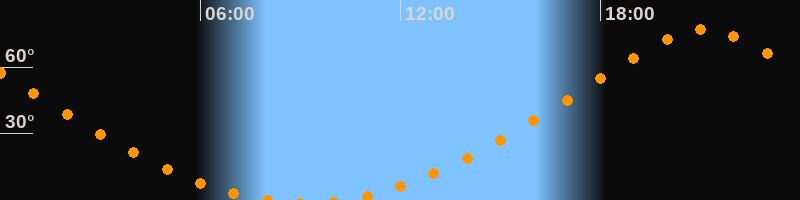 Höchster Stand (Kulmination)21:07 Uhr (h = 77,1°)