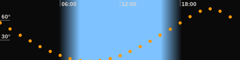 Höchster Stand (Kulmination)20:59 Uhr (h = 77,1°)
