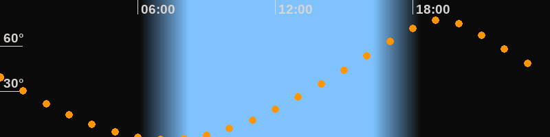 Höchster Stand (Kulmination)19:13 Uhr (h = 77,1°)