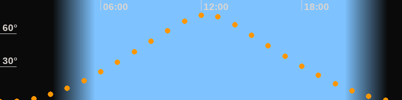 Höchster Stand (Kulmination)12:18 Uhr (h = 77,1°)