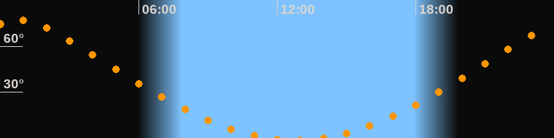 Höchster Stand (Kulmination)00:46 Uhr (h = 77,1°)