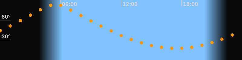 Höchster Stand (Kulmination)05:29 Uhr (h = 83,6°)