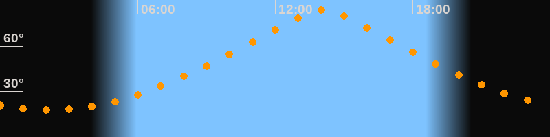 Höchster Stand (Kulmination)14:05 Uhr (h = 83,6°)