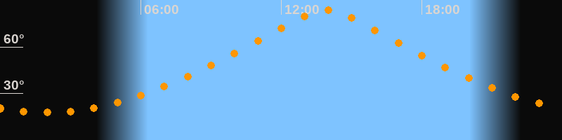 Höchster Stand (Kulmination)13:55 Uhr (h = 83,6°)