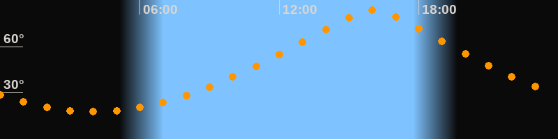 Höchster Stand (Kulmination)16:01 Uhr (h = 83,6°)