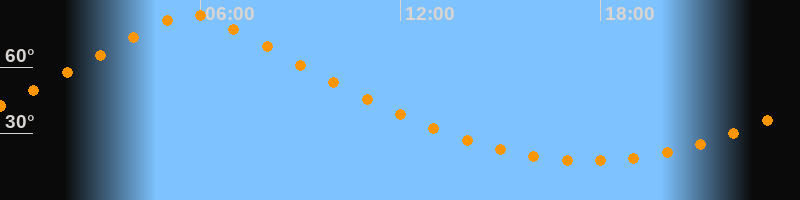 Höchster Stand (Kulmination)05:43 Uhr (h = 83,6°)