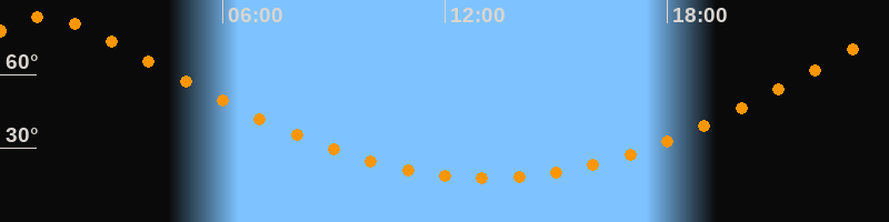 Höchster Stand (Kulmination)01:14 Uhr (h = 83,6°)