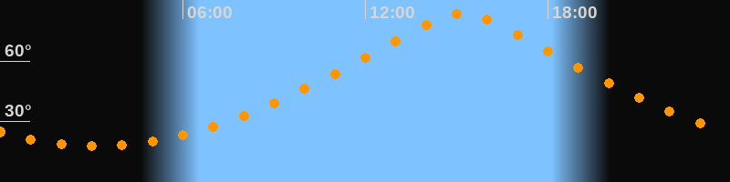 Höchster Stand (Kulmination)15:11 Uhr (h = 83,6°)