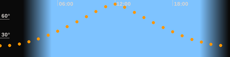 Höchster Stand (Kulmination)11:55 Uhr (h = 83,6°)