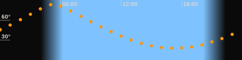 Höchster Stand (Kulmination)05:18 Uhr (h = 83,6°)
