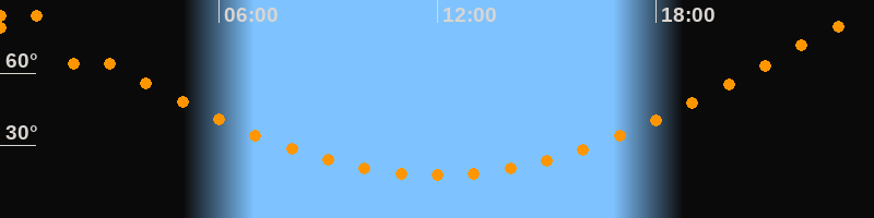 Höchster Stand (Kulmination)23:59 Uhr (h = 83,6°)