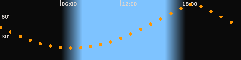 Höchster Stand (Kulmination)19:10 Uhr (h = 83,6°)